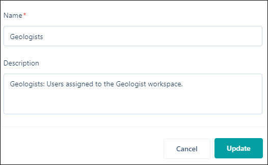 - In the Edit Group dialog, enter a Name and a Description for the group