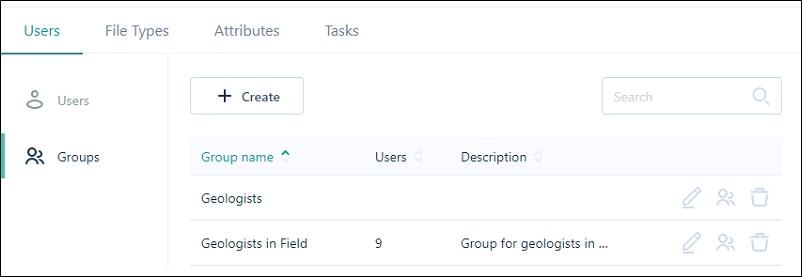 Click the Create button to create a new group