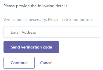 - Enter your email address and click Send verification code. You will receive an email with your verification code.