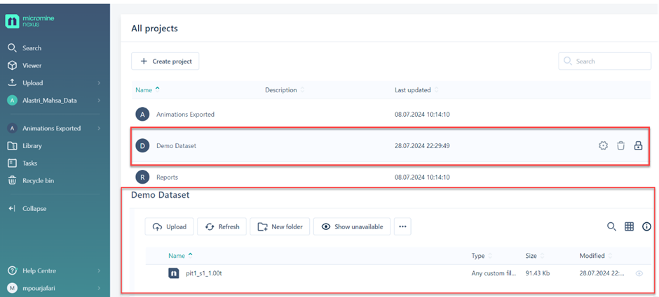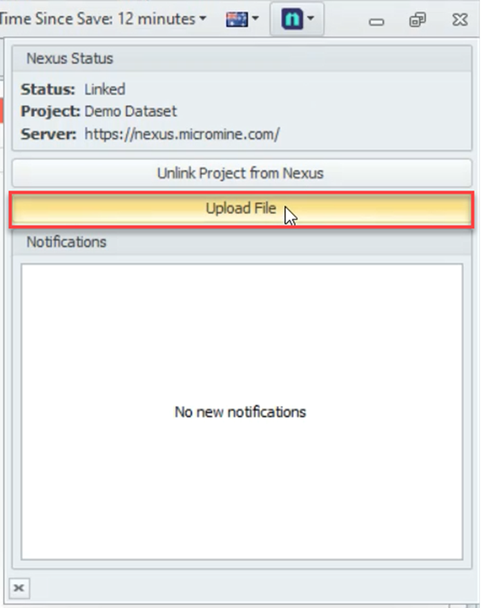 Access Micromine Nexus by logging in at the Nexus login page. Link your Alastri project by selecting or adding a project, then upload files by selecting and uploading desired files. Additional help is available via online manuals and the Learning Management System.