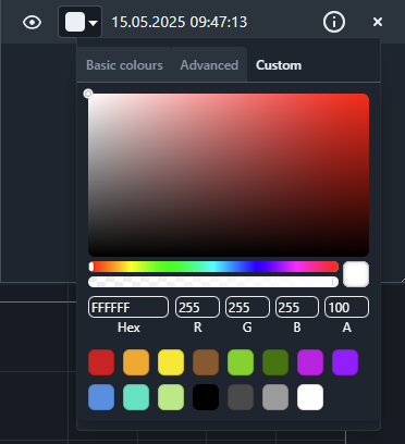 Advanced – an extended palette featuring a colour ramp for more precise selection
