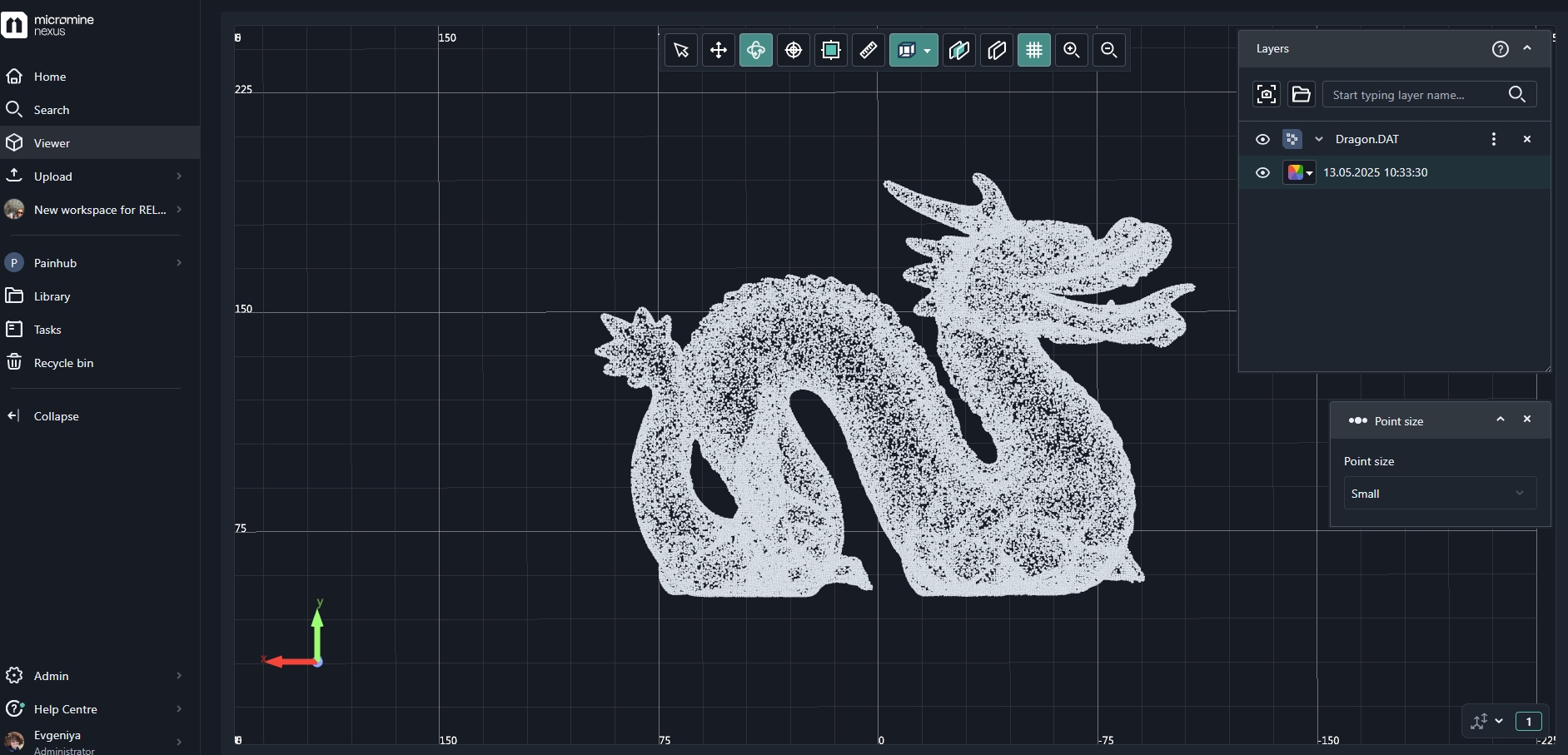 Micromine Nexus Viewer now supports the visualisation of point data from Micromine Origin & Beyond. All .DAT files uploaded to Nexus—whether via the browser or directly from Origin & Beyond—can now be previewed within the application.