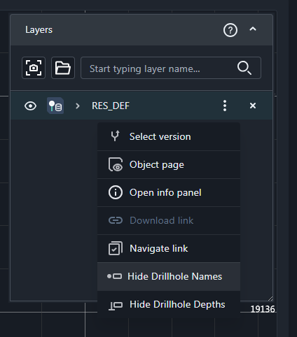 In the three-dots menu of the Drillhole object inside the Layers panel, users can now: